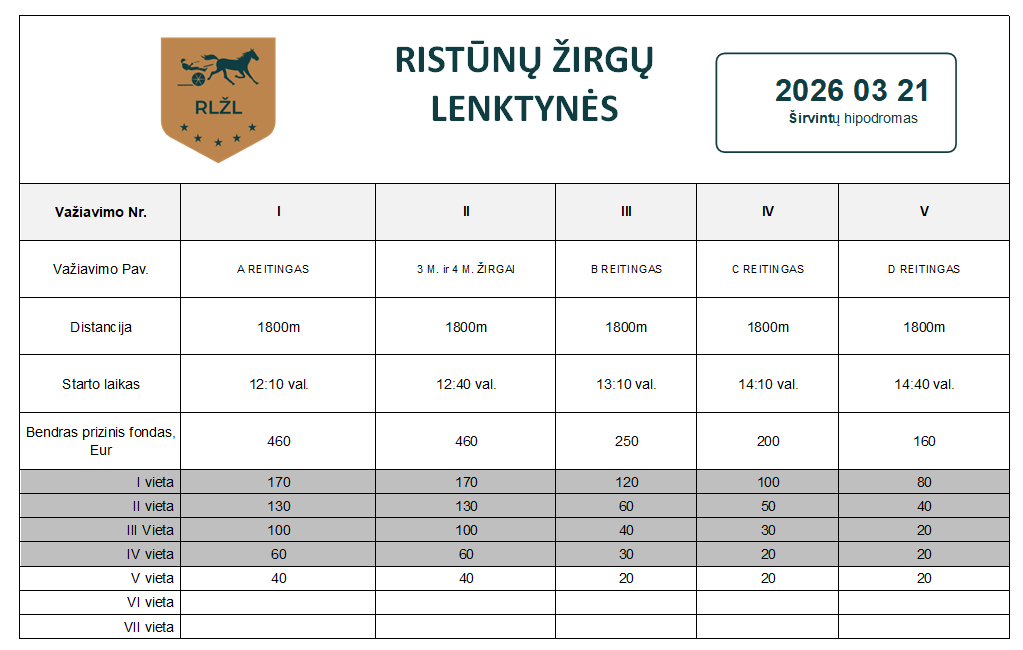 Užsiregistravus mažiau negu 18 žirgų ristūnų lenktynės nebus vykdomos.